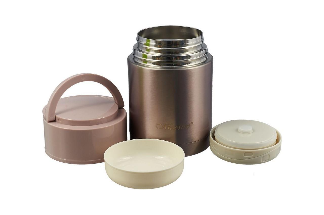 Термос для їжі Maestro MR 1636-110 об'ємом 1100 мл випускається в нержавіючому корпусі. Піала і кришка, що відкручується, можуть бути використані в якості тарілок. Зручні ручки, які за необхідності загинаються і стають частиною кришки
