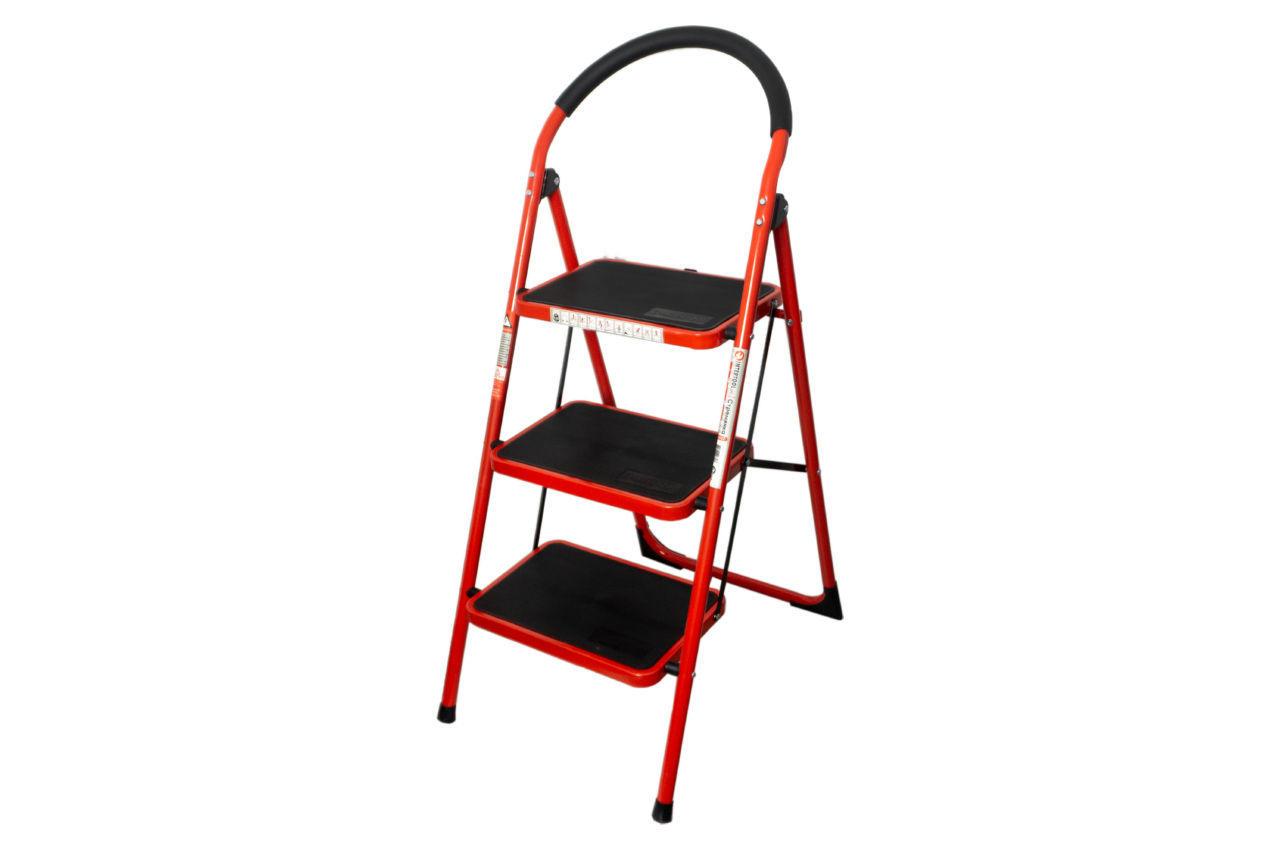 Драбина відрізняється своєю багатофункціональністю, стійкістю і міцністю. Широко застосовуються для виконання будівельних, оздоблювальних і господарських робіт: при фарбуванні стелі, стін, наклеювання шпалер, заміну лампочок, зборі врожаю з дерев і т.п. Виготовлена ​​з надійного сталевого круглого профілю, витримує навантаження до 150 кг. Відповідає європейському стандарту EN14183. Сходинки широкі (38 х 26 см) і надійні, на них ви не боїтеся впасти. Вони покриті нековзними гумовими накладками, ви стоїте стійко! Також є система безпеки для захисту від випадкового складання драбини під час роботи (на останньому щаблі є спеціальний металевий гак, який фіксує відкидні частина). Ніжки оснащені пластиковими черевиками проти ковзання. Драбина легко складається і займає зовсім небагато місця. Зі своїми габаритами (120х45х2.5 см) поміститися в комору, на балкон, за дверима і навіть під ліжком! На драбину зручно підніматися і переносити її, завдяки м'якому, великому округлому поручня. Особливості Стійка - задня опора посилена діагоналями жорсткості; Сталева конструкція забезпечить драбині міцність і довговічність; Надійне кріплення ступенів. Висота до верхнього ступеня: 729 мм; Кількість ступенів: 3; Розмір ступені: 380 * 260 мм; Профіль: сталевий круглий; Максимальне навантаження: 150 кг Висота до верхнього ступеня: 729 мм; Кількість ступенів: 3; Розмір ступені: 380 * 260 мм; Профіль: сталевий круглий; Максимальне навантаження: 150 кг Висота до верхнього ступеня: 729 мм; Кількість ступенів: 3; Розмір ступені: 380 * 260 мм; Профіль: сталевий круглий; Максимальне навантаження: 150 кг