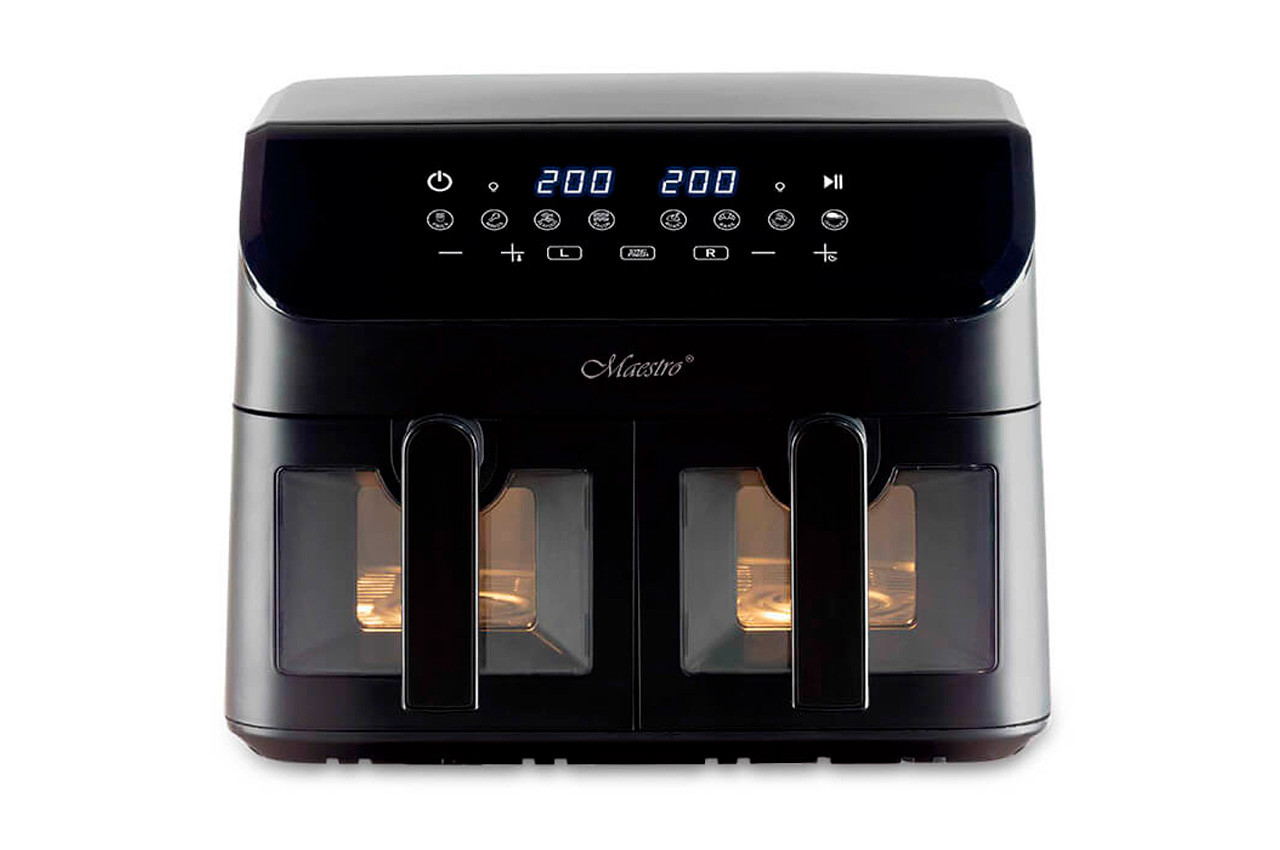 Maestro MR-758. Ця вражаюча фритюрниця має об'єм 9 літрів і дозволяє легко готувати дві різні страви одночасно. Фритюрниця оснащена інтуїтивно зрозумілим цифровим дисплеєм, який дозволяє легко встановлювати та регулювати. Завдяки 8 встановленим програмам ви можете легко готувати широкий вибір страв і щоразу досягати ідеальних результатів. Висока потужність 2000 Вт забезпечує швидке нагрівання та ефективне приготування. Насолоджуйтесь універсальним, зручним та економічним приготуванням їжі з двозонною фритюрницею MR-758. Фритюрниця має 2 чаші на 4.5 літри та 2 окремі системи управління.